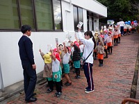 年少組さんは体操をして園長先生の朝礼をしました