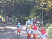 年中・年長組さんは爽やかに息をきらせながら緑道の坂を駆け上がってきていました