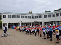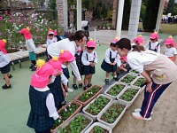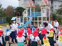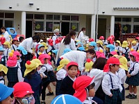 クラスの先生に頭なでなでしてもらって嬉しそうな子ども達