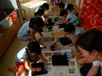 先生からヒントをもらって、自分で考えながら作りましょうね
