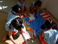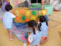 折り紙でおばけのペンダントを作ったり、○×ゲームをしたりして楽しく過ごしました