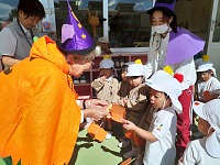 園長先生からラムネをもらって「ハッピーハロウィン♪」