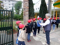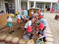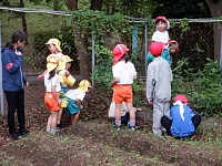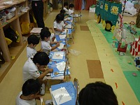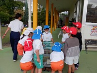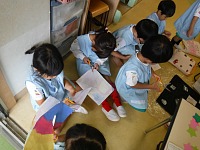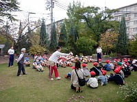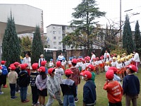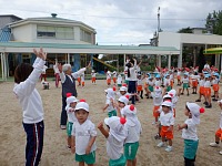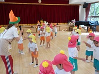 朝礼が終わると、小学校のお兄さん、お姉さんが年長組さんと遊びに来てくれました