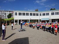 いいお天気で子ども達の背丈くらいのコスモスが風に揺られてキレイです