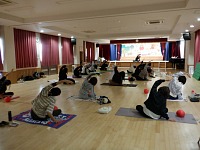 お遊戯室では母の会主催の「ピラティス」が行われていました