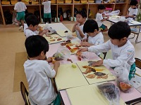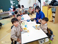 中学生のお姉さん先生と一緒に絵本を読んでもらったり、給食を食べたり楽しく過ごしましたよ