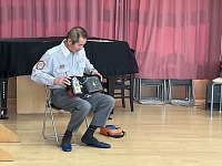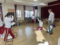 ビデオでの講習の後に人形を使って心臓マッサージ、人工呼吸、AEDのロールプレイ研修をしました。