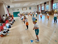 一緒に体操をしました