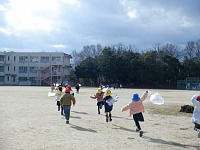 コマを作ったり、凧を作って校庭で揚げたりしました