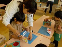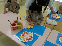 ひよこ組さんが製作帳で合わせ絵をしていましたよ