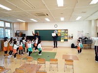 年長組の英語遊びではペアで言うところや今の気持ちを発表するところなど手を挙げる子が沢山いました。