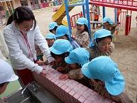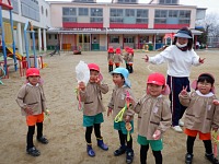 年中組さんは早速残っている雪や氷を見つけて遊んでいました