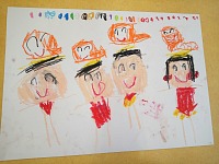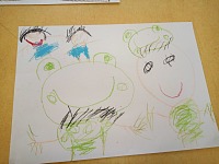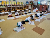 ひよこ組と年少組さんが発表会の絵を描きました