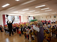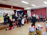 先生たちのノリノリな演奏と動きに、子どもたちも思わず立ち上がり、