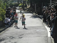 最後の心臓破りの坂を、お家の方の応援を受けながら一生懸命に走ります