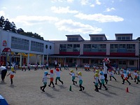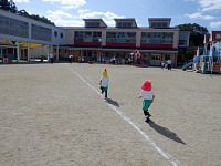 ひよこちゃんと年少組さんは30メートル走のタイム計測