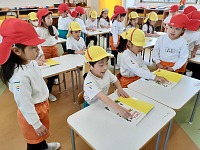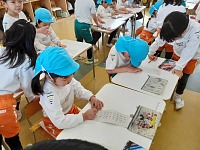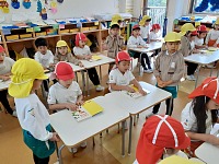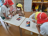 年中組さんは頑張っている九九を年長組のお兄さん、お姉さんに採点してもらい、