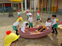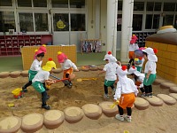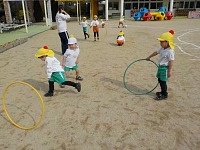 ひよこちゃんと年少組さんは一緒にお外遊びやサーキット遊び