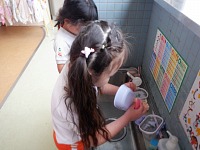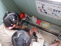 食べ終わると、感謝の気持ちを込めてお弁当箱をキレイに洗いました