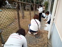 運転手さんと添乗員さんがお遊戯室裏の草や枝を切ってキレイにしてくれました