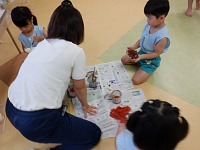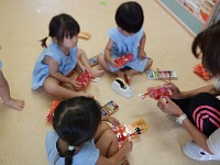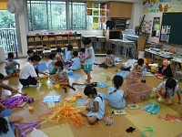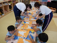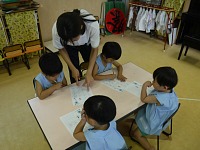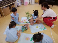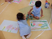 年少ちゅうりっぷ組さんはコスモスの絵を描いていました