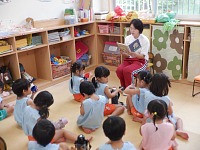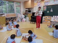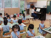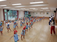 お遊戯室からはダンスの賑やかな音楽と元気な声