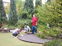 芝生広場では運転手さんがウッドデッキの修理をしてくれていました