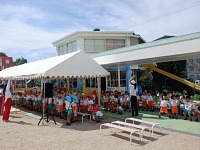 年長組さんからひよこ組さんまで体操・よさこい・ダンスを披露しました