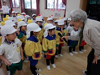 お世話になった先生に頭なでなでしてもらって嬉しそうな子ども達