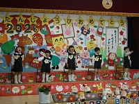 みんなにたくさんお祝いしてもらって嬉しそうなお誕生児さん