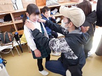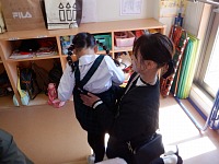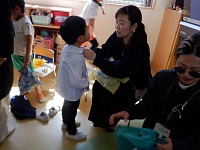 お着替えを手伝ってもらってご機嫌な子どもたち