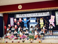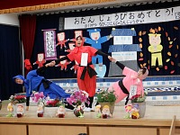 ちびっこ忍者に変身したお誕生児さんが颯爽と登場
