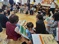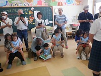 お膝に座って、一緒に「りんりん林檎の」の漢字絵本を読みました