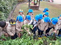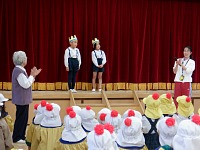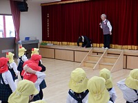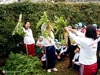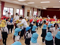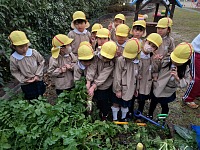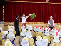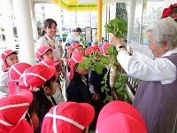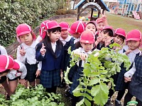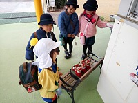 終業式後、幼稚園で収穫した大根をみんなにお披露目